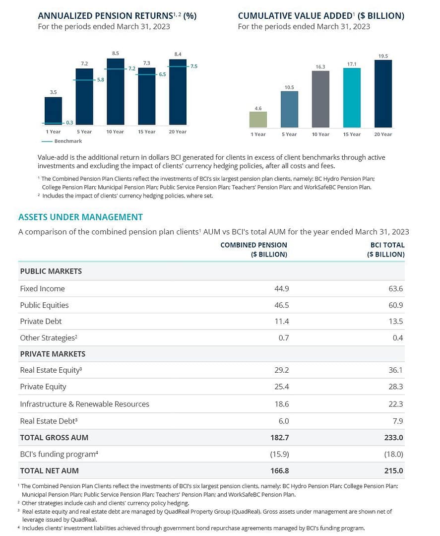 BCI’s corporate annual report outlining other investment and operational highlights will be released on July 12, 2023, and will be available online at BCI.ca/reports. All figures are in Canadian dollars.